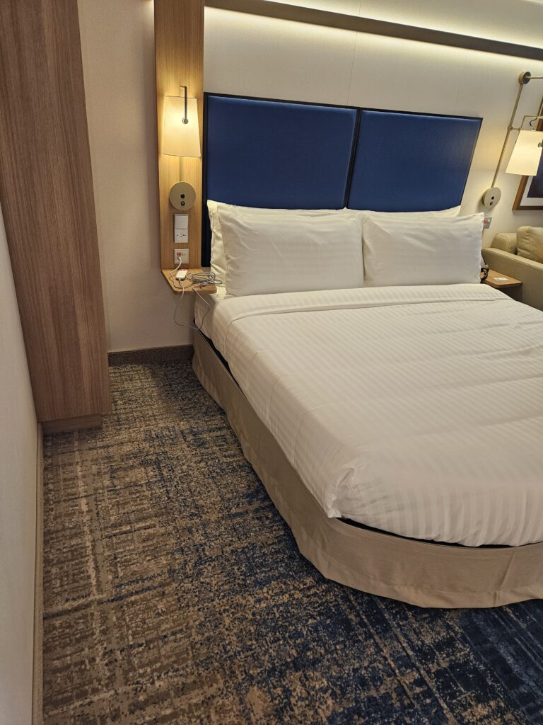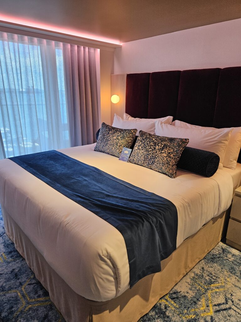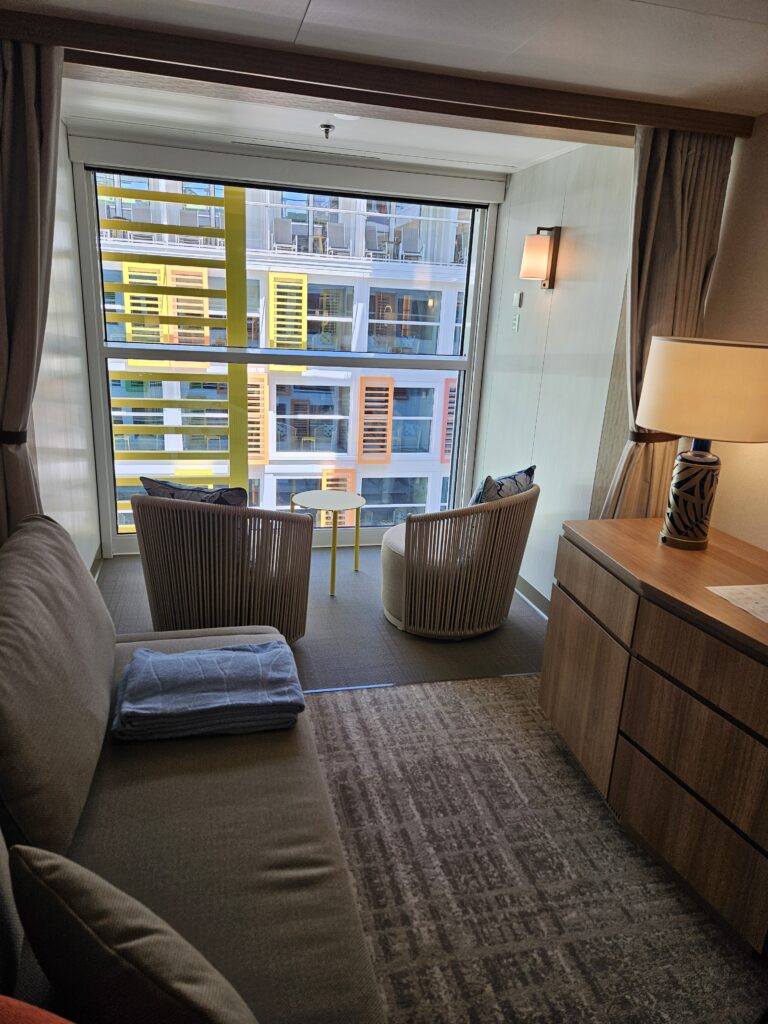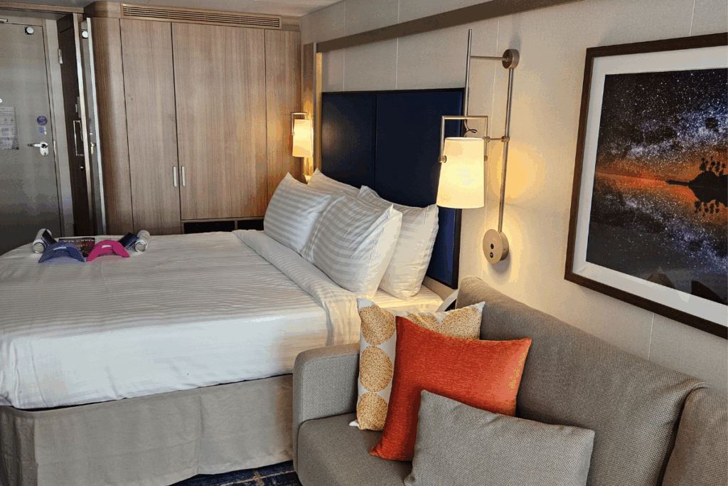 The Infinite Balcony is a fresh design that brings the balcony right into your room. Instead of stepping outside onto a separate balcony, the top half of the wall lowers with the push of a button, opening your stateroom to the ocean air and amazing views. This gives you extra usable space while still letting you enjoy that open-air feeling. It’s modern, clever, and quickly becoming a guest favorite.