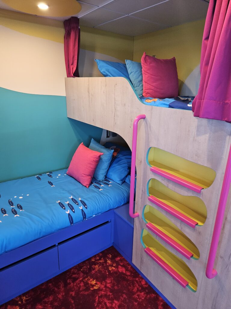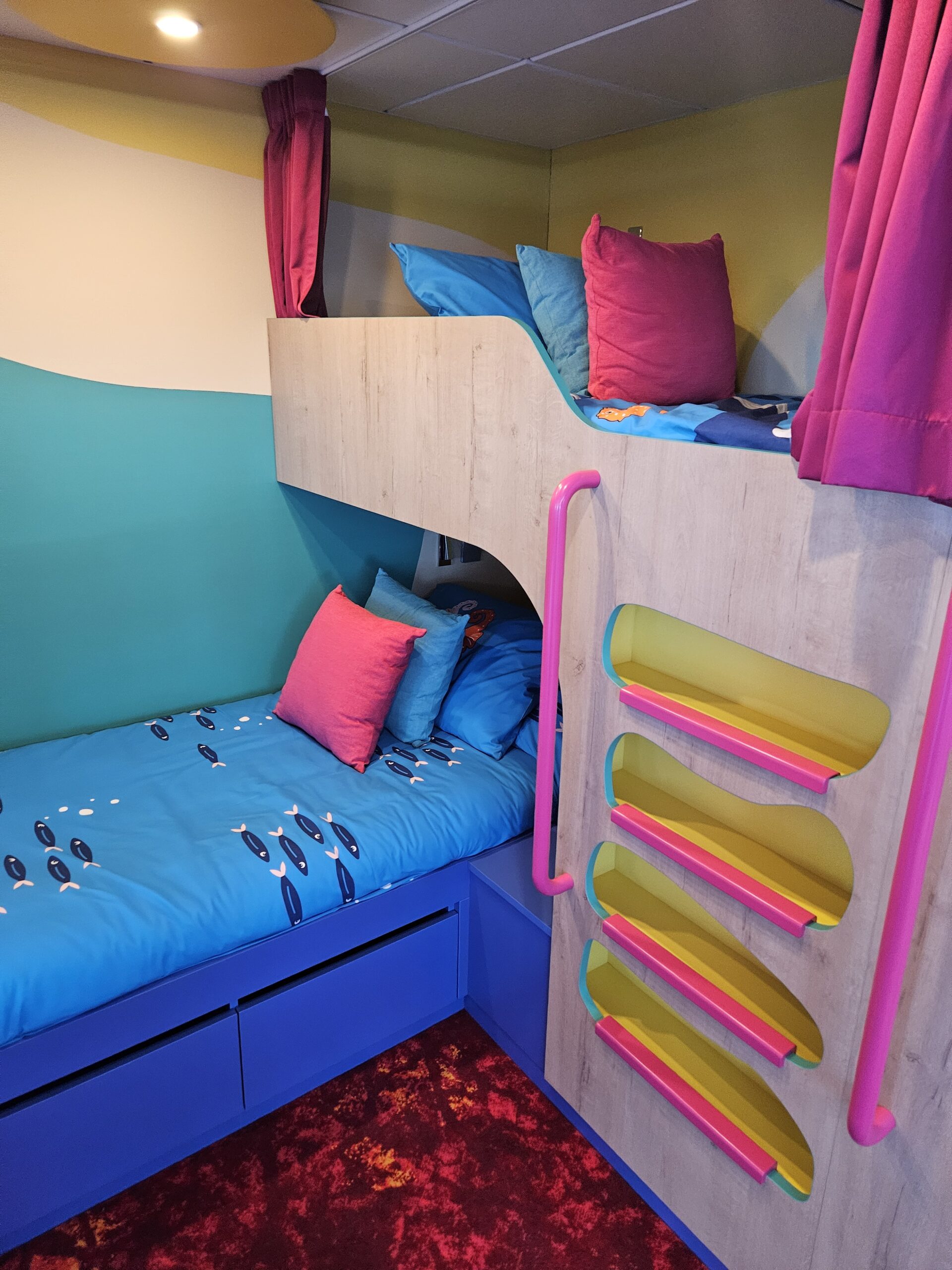 This is the showstopper! The Ultimate Family Townhouse is truly a one-of-a-kind stateroom that sleeps 8. With multiple levels, plenty of space, and playful touches, it’s designed with families in mind.